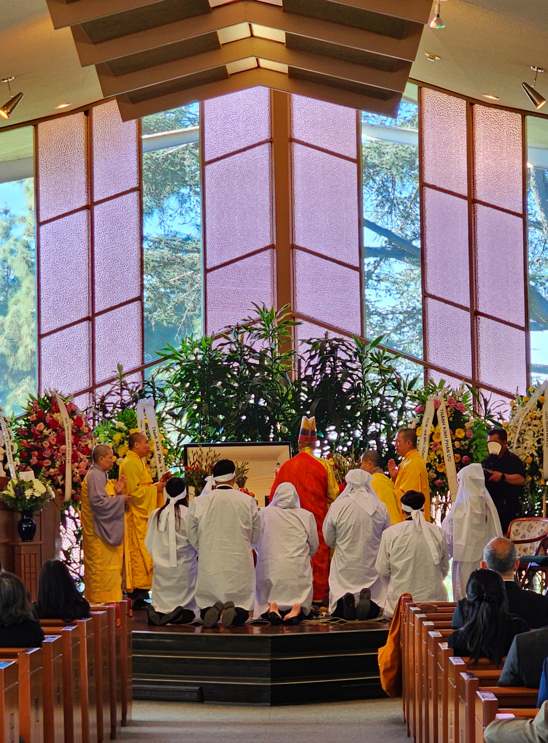 Lễ di quan sẻ được cử hành lúc 14 giờ 30 và linh cửu sẽ được an táng tại Garden of the Phoenix Roseview Terrace, Rose Hills Memorial Park .