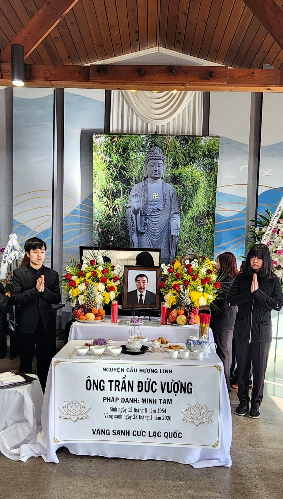 Nhận được bản Cáo Phó báo tin buồn : bạn Trần Đức Vượng cựu SV lớp TKNN, cựu SV ĐH Luật Khoa Sài Gòn, pháp danh Minh Tâm, đã từ giả chúng ta để ra đi xa vào lúc 4 giờ 15 sáng thứ tư 28 tháng 1 năm 2026 tại BV Kaiser ở Anaheim, quận Cam, Nam California. Hưởng thọ 72 tuổi.