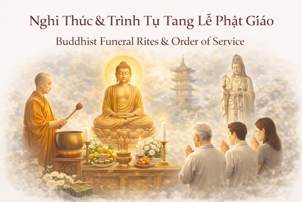 Chuyên mục này được xây dựng để giúp gia đình và thân hữu dễ dàng tìm hiểu những nội dung cần thiết trong tang lễ theo truyền thống Phật giáo Việt Nam. Tại đây, quý vị có thể khám phá ba phần chính: Nghi Thức & Trình Tự Tang Lễ Phật Giáo, Kinh Nguyện Phật Giáo Dành Cho Tang Lễ, và Hướng Dẫn & Nét Đẹp Văn Hóa Phật Giáo Việt Nam — nhằm hỗ trợ việc tiễn đưa người thân một cách trang nghiêm, thành kính và đúng với nét đẹp văn hóa Việt.